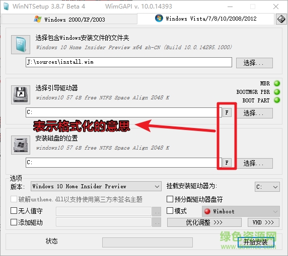 5.挂载安装驱动器(针对NT6以上系统)指的是安装系统后系统盘的盘符,现在新版默认就是C盘。例如,选择d盘的话,安装的系统盘的记号显示d盘。