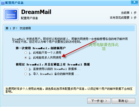 1、梦幻快车支持多用户使用,即如果您是跟家人、朋友或者同事一些共用一台电脑收发各自的电子邮件,可以不同的用户设置不同的梦幻快车用户管理密码,而且假如您已经在本机上使用的梦幻快车,可以直接导入以前的数据库,而不要担心邮件的丢失。操作如下图: