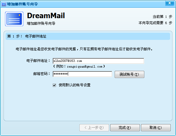 输入正确的地址和密码,测试账号,OK。点完成就可以进入主界面接受邮件了。