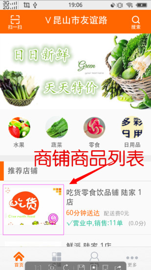 2.新版app新增商铺信息页面,点击开始订购进入商铺列表页面。