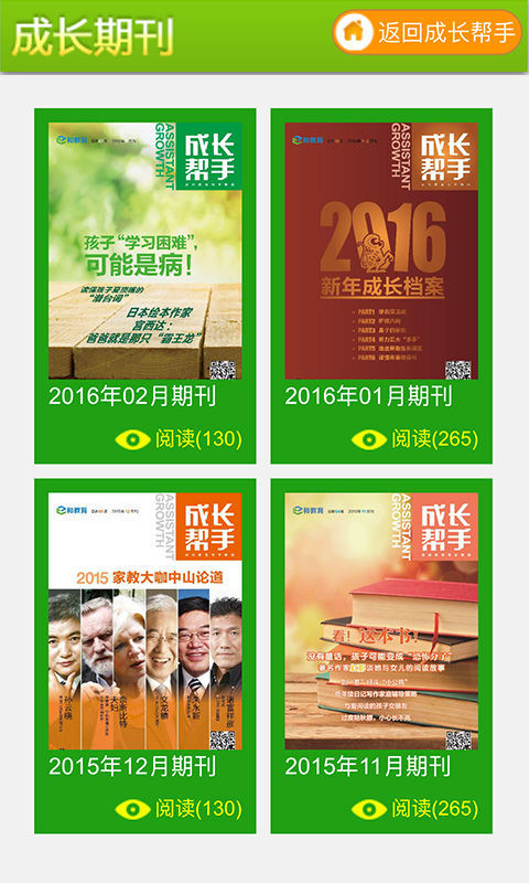 成长帮手app是全国专业的家庭教育,根据3-18岁孩子出现的健康、学习、心理、教育、人格发展等问题,通过移动互联、纸媒、专题活动等形式,为家长提供教育辅导方法。此外,家长在教导孩子的过程中,可以随时向成长帮手团队咨询,让家长轻松伴随孩子健康快乐地成长。