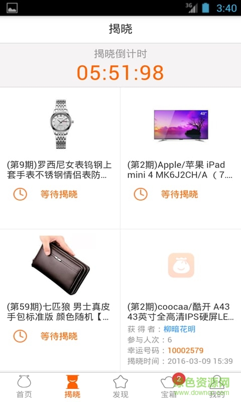流程:1、挑选商品 2、支付 3、揭晓获得者 4、晒单分享