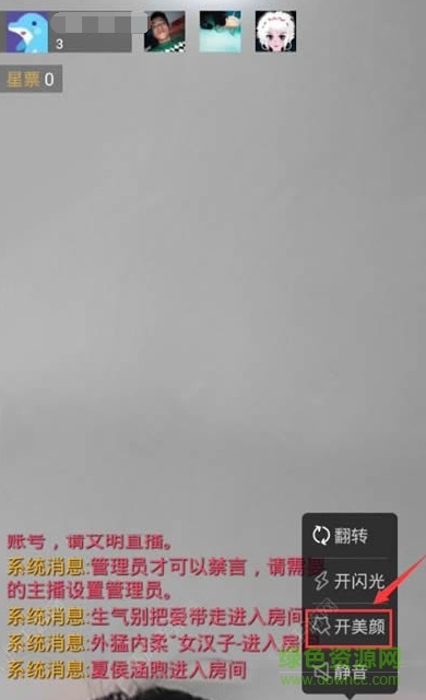 3、点击照相机后即可看到美颜功能,我们点开美颜即可快速开美颜,点关美颜即可快速关美颜。