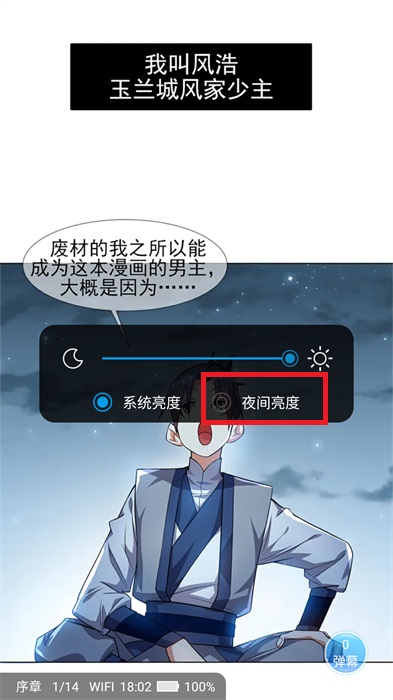 4、最后你在这里就会看到【夜间亮度】就可以设置为夜间模式,这样我们就可以在夜间护眼的看漫画内容。