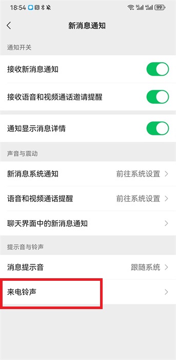 4、在此界面中可以看到最下方的【来电铃声】,点击进入其中去进行设置;
