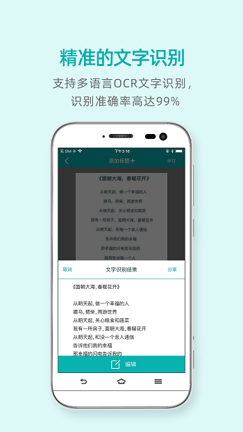 扫描王app,是手机描仪,文档管理工具。拍照清晰可切边裁剪图像,裁剪你需要的文件内容,生成PDF。邮件发送、连接打印机、传真、微信共享电脑脑功能齐全、云存储,多设备多途径数据区!实用型的办公无纸化节能工具!