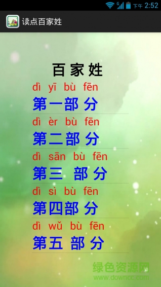 读点百家姓app是一款为孩子们打造的百家姓启蒙教育平台,在线帮助幼儿学习百家姓写法和识别,弘扬中国传统文化,是中华传统美德,从娃娃抓起,学习百家姓!喜欢就来绿色资源网下载体验吧!