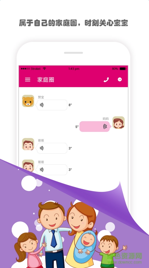 1、家庭圈聊天,全天陪伴宝宝,快乐成长;