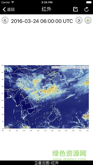 2.查看实时卫星云图,有“可见光”“红外”静止卫星云图动画以及极轨卫星“高清影像”。