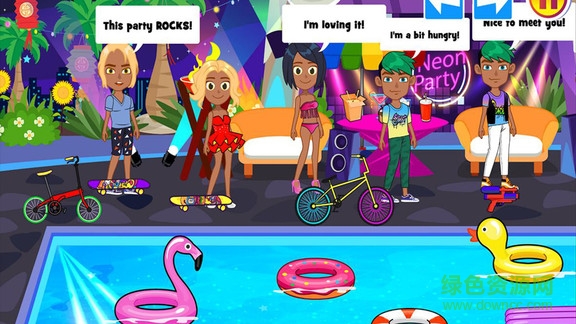 你喜欢过家家系列?你爱模拟机场,模拟大城市剧场,模拟家庭?你爱霓虹舞蹈俱乐部,派对,泳池派对,和游览车?你一直想要的生活与你的朋友过夜生活,走出去,跳舞,在泳池边闲逛,吃超好的食物,在食物的卡车代表?那么你一定会喜欢暗夜霓虹俱乐部 - 儿童舞蹈游戏!整夜的霓虹灯夜总会狂欢。享受这令人上瘾的游戏,与你的朋友们一起玩吧!