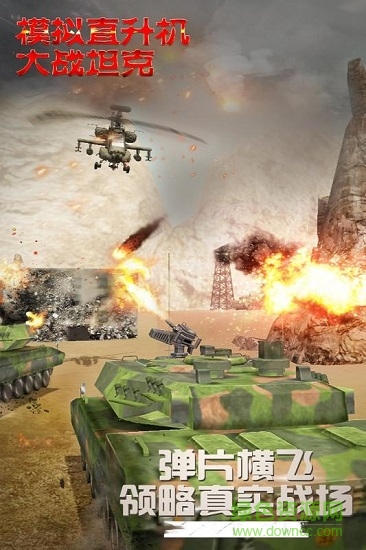 模拟直升飞机大战坦克是很好玩的手机游戏,主要是给用户提供各种各样的的坦克飞机和大炮,,而且采用了最新的3d合成技术,是非常好玩的直升机小游戏,而且玩家还能自己更新一些游戏动作和武器配件等,感兴趣的用户可以来绿色资源网下载吧!