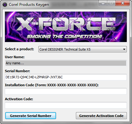 打开注册机,选择corel videostudio pro X6,serial number栏中将会生成一个序列号