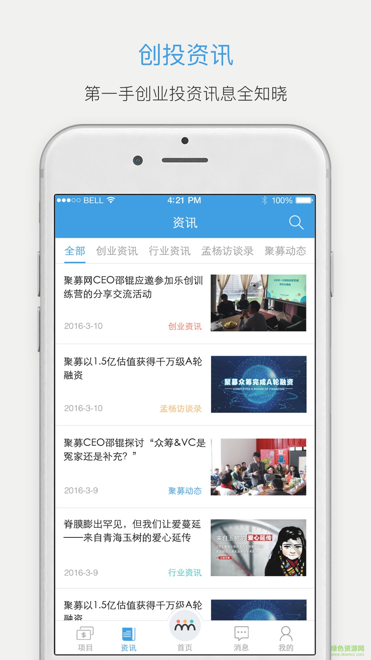 新增发现版块,子版块分为项目、资讯、活动,项目页面将展现更多优秀的创业项目;活动页面会发布活动信息,并新增活动报名功能