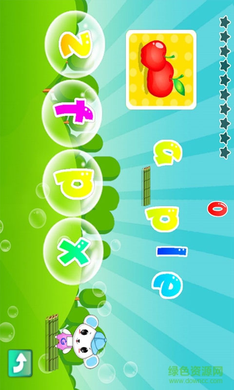 儿童学英语游戏是一款专注于幼儿开发智力,提升英语学习听、说、读、写能力的儿童教育类手机游戏,通过Q版的游戏风格,吸引宝宝的游戏欲望,从而一步步将英语知识灌输给宝宝,并达到一个长久记忆的效果,快来绿色资源网为宝宝下载吧!