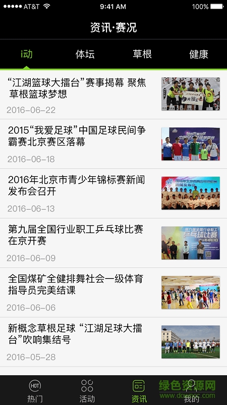 i动体育app是一款专为体育爱好者准备的一款手机体育资讯软件,能随时看到周边热门的体育活动,并可以线上报名随时参加,喜欢的体育的朋友快来绿色资源网下载,找更多志同道合的人一起玩耍吧!