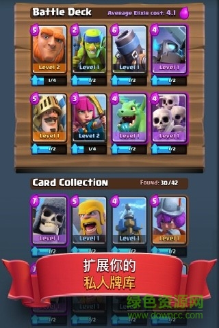 在该游戏中,玩家可以收集并升级几十种你所熟知和喜爱的部落军队、法术以及防御建筑卡牌,还有同样令人喜爱的皇室家族人物:王子,骑士,飞龙宝宝等等.