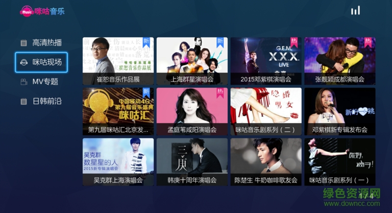 咪咕音乐TV版是一款电视音乐播放器,为大家提供海量的音乐资源和音乐MV,还有音乐电台可以收听,让大家在家里也能通过智能电视音乐播放器感受无损音乐的动听。喜欢的朋友快来绿色资源网下载吧!