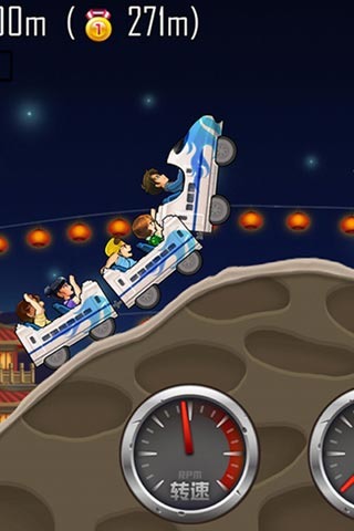玩家需要驾驶一款赛车跑在山地上,由于山地非常颠簸,需要玩家很好的把握油门和刹车,保证车子就不会翻过来。沿途可以收集金币,用来改造车子。