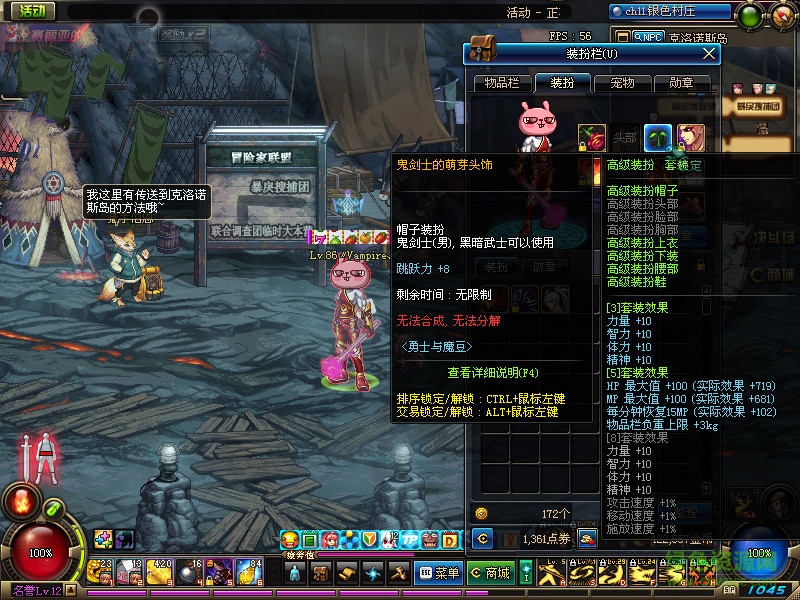 为了继承屌丝玩家传统,咱必须再一次把免费赠送的活动装扮利用起来!所以这次我把全职业的萌芽帽子都改成了冷兔帽子,一管疲劳就能够达成!