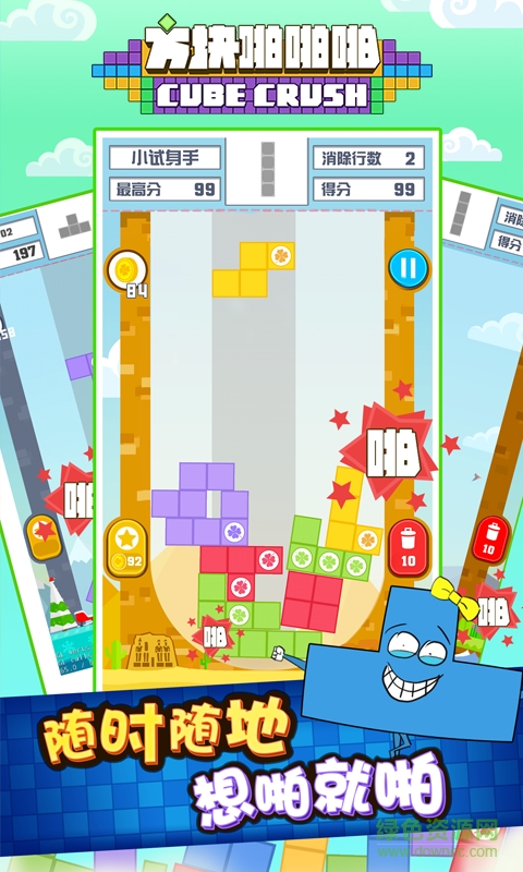 创意休闲手游《方块啪啪啪》是一款基于物理引擎打造的方块消除类游戏。由巴别时代自主研发,游戏融合了经典的俄罗斯方块和时下热门的消除游戏的核心玩法,并首次将密度、重力、摩擦力等物理学理念融入传统的俄罗斯方块中。严谨的游戏逻辑搭配简易的操作模式,带来全新的休闲游戏体验。