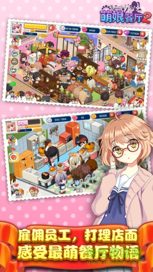 店长大人欢迎回来,您的萌娘餐厅已经准备好了~ 《萌娘餐厅2》是一款二次元风格的模拟经营及育成手游,融合了大量时下流行的动漫元素.游戏中你将作为店长,在萌萌的小助理陪伴下经营你的萌娘餐厅,从烹饪料理、研发、布置小店,到雇佣员工、宣传、处理外卖订单、举行派对,所有事务均由你亲自安排,还可以和身边的朋友们进行丰富的社交活动,体验梦幻而又真实的模拟经营,共同书写妙趣横生的餐厅物语.