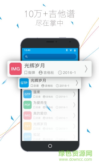 1.收录近20万吉他曲谱,指弹,弹唱,电吉他谱,贝司谱,乐队谱,总谱,尤克里里谱.