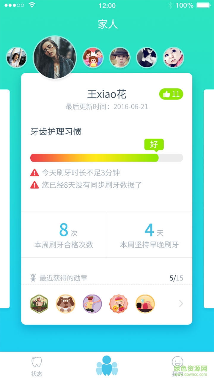 3、家人的刷牙习惯跟踪:teeth引入了家庭牙齿健康管理的数据共享模块,无论在异国他乡还是本地通过云同步家人的刷数据,实时提醒家人养成良好的刷牙习惯。