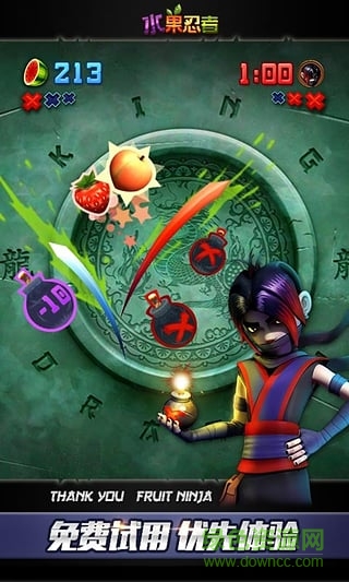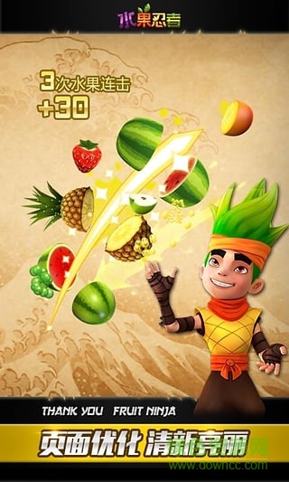 《水果忍者》是一款简单的休闲游戏,游戏流畅度极高!玩法简单,目的只有一个——切水果!屏幕上会不断跳出各种水果——西瓜、凤梨、猕猴桃、草莓、香蕉、石榴、苹果等,要在水果掉落之前要快速的全部砍掉哦!但是,千万别砍到炸弹!游戏设置有给力的道具,可以帮助您得到意想不到的分数哦!游戏提供多把酷炫刀刃供玩家选择,让您获得更刺激的视觉感受,还在等什么!快来一起切水果吧!