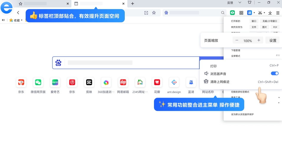 3. 支持多标签、支持标签防假死、网页崩溃恢复功能,使得上网更加顺畅。