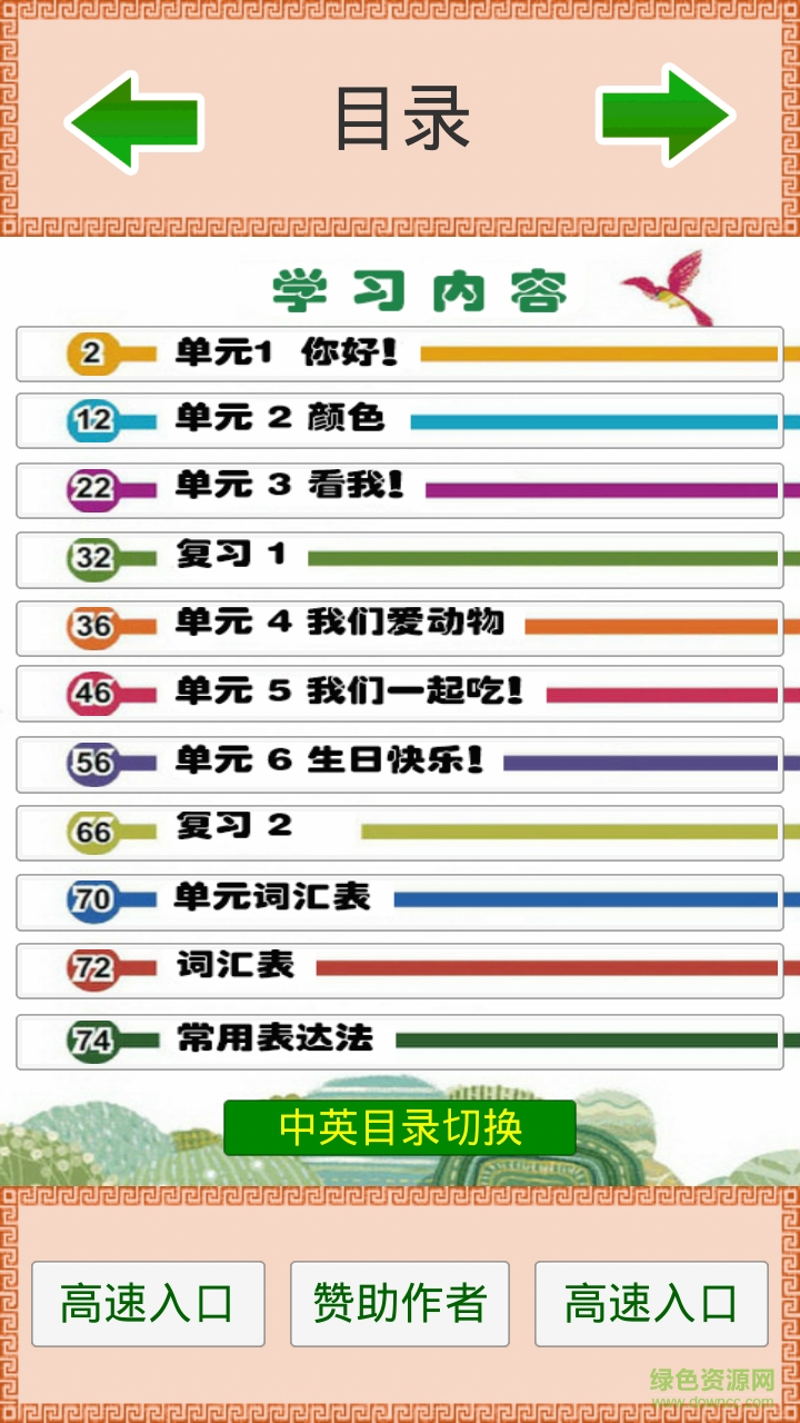 小学三年级英语上册app是专业与学习幼教的应用软件高清图片,与课本同步,哪里不会点哪里,轻松点读,,可以让孩子跟着软件边学边玩,让小朋友不会抗拒学习英语,欢迎大家到绿色资源网下载使用!