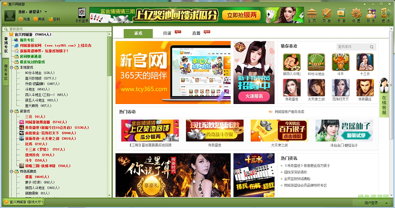 宜兴同城游戏大厅是专为宜兴朋友们打造的棋牌游戏平台!将宜兴地方棋牌麻将一网打尽。同城游大厅包含了品种繁多的地方棋牌和休闲游戏,新版本还增加了丰富的社交系统,让大家可以和家乡朋友一起玩本地特有的棋牌,既能休闲娱乐又能联络感情,是茶余饭后用来消遣的不二选择。欢迎来绿色资源网试玩!
