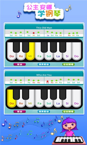 公主安娜学钢琴手游可以帮助孩子模拟真实钢琴玩法,体验全新学习方式,可以模拟各种经典曲目,模拟了钢琴的各个按键,可以查看各种热门歌曲,还可以录制自己的作品。