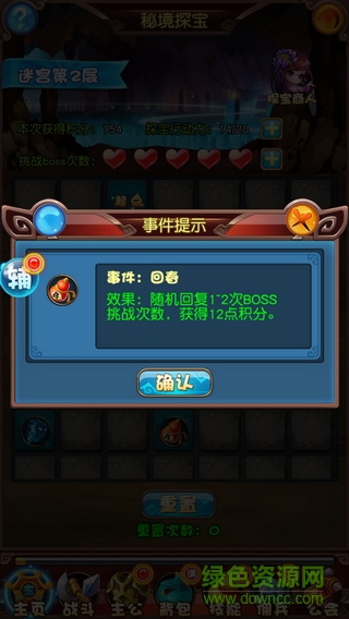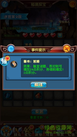 置身于秘境迷宫中进行探宝冒险,打怪、开宝箱、答题获得积分。