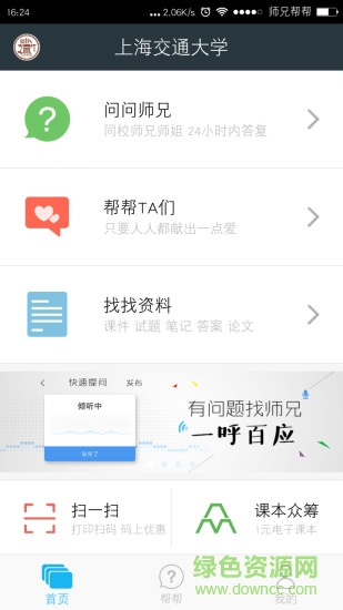 师兄帮帮苹果版是一款大学考试通关神器,提升绩点最佳伴侣,一款专注于学习笔记、课件讲稿、复习资料、习题答案、课程设计、考试真题、毕业论文等大学校内资料自由分享的软件。