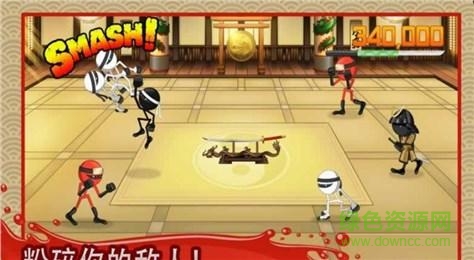 《粉碎忍者 Stickninja Smash》是一款以火柴人形象打造的忍者动作类游戏,玩家要做的就是顺利打败前来挑衅的忍者,利用手中的武器将来袭的敌人全部粉碎,保卫道馆的神剑,随着时间的推移,来袭的敌人会越来越强大!看看你能顺利保卫自己的道馆吧,一起来挑战吧!