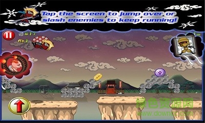 4、游戏操作方法很简单,只要点击屏幕即可发出招式和跳跃,随着游戏进行速度会越来越快,敌人也会更加密集。