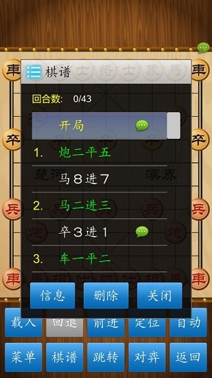 支持打谱功能,可载入棋谱文件,浏览棋谱,自动播放棋谱。