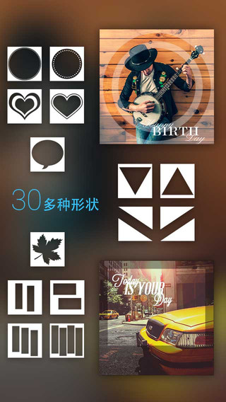 可为你的图片加入30+种形状:圆形?心形?条纹?统统免费!