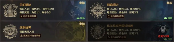 达到对应等级即可开启对应特殊副本,可以直接制作副本装备用来前期过渡