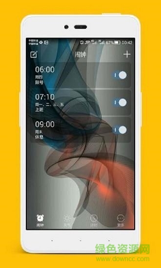 【天气提示】响铃界面提示当前天气情况,让您在睡眼朦胧之际准确判断一日的着装,从此您再也不用担心因贪睡而迟到,因忘带伞而淋雨,因大风降温忘带衣服而感冒了