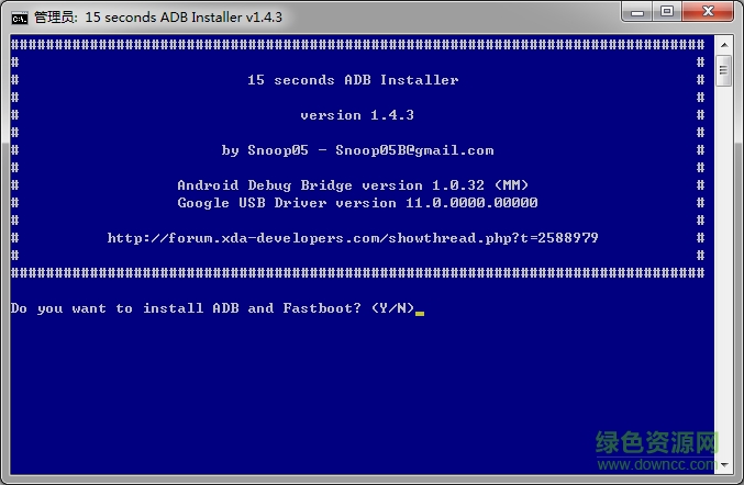 3.输入 Y/Yes 安装ADB 到系统目录以供所有用户使用,或者N/No 只在当前用户中生效