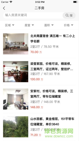 二手房信息排列整齐,不同规模、不同价格,用户可以自行选择进行浏览;