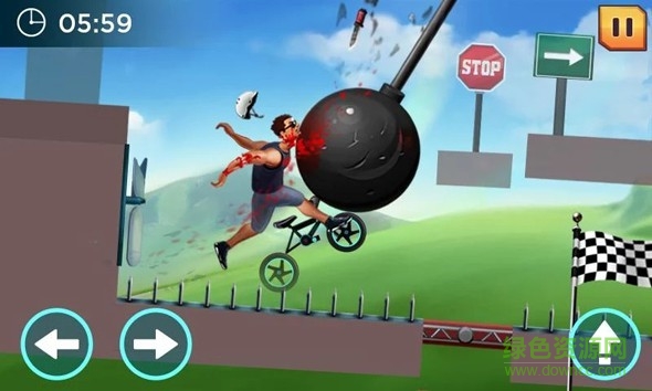 疯狂飞车游戏英文版是一款非常惊险、刺激的动作冒险手游。游戏设计非常具有特色效果,在游戏中玩家需要驾驶自行车进行各种各样的闯关冒险动作,多重障碍等着你,钉板,铁球、飞刀各种破坏物。你需要通过精湛的技术以及巧妙的方法来躲避。非常考验灵活性。还在犹豫什么,快来绿色资源网下载体验吧!
