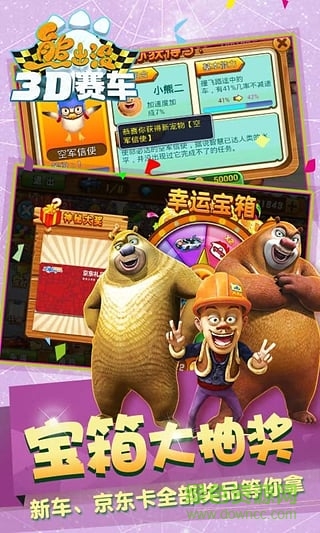 游戏高度还原动漫中的人物剧情,紧张刺激的游戏环节,多种特色赛事等你来战“熊出没”官方正版授权,超萌的竞速手游!六个经典原版角色、八款炫酷飞车、全新宠物系统,陪你玩转梦幻的四季场景!