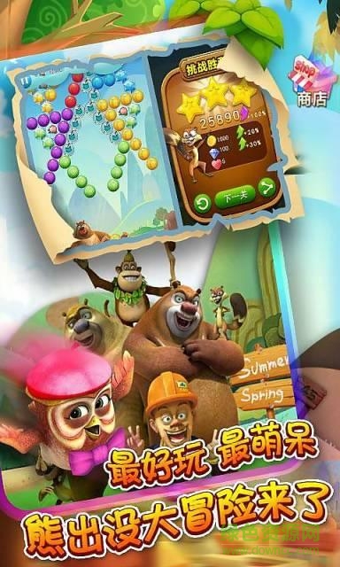 2、泡泡龙游戏我们见多了,但像《熊出没之泡泡大战》一样拥有超丰富关卡类型、超新颖玩法、超有趣道具、超Q萌熊大熊二角色的泡泡龙游戏,相信你一定没见过!