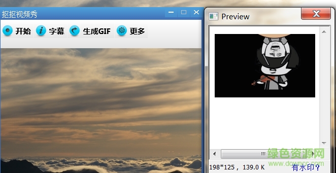 这是个一定让您相见恨晚的gif制作软件,把视频转化为GIF动画,方便快捷,画质高清。具体的使用非常简单:用软件的透明内框,框住您需要的视频内容,点击开始即可。还有比这更容易的吗?还可以添加删除帧,添加字幕,支持自定义水印等等。 网络上每天产生的无数的微博动画,微信/qq表情,您没猜错,它们很多就来自本软件!