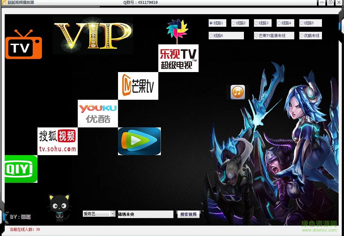 1、在绿色资源网下载并运行猫腻vip视频播放器
