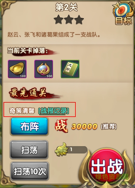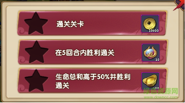 每颗星代表一个通关要求。想要达成这些要求,就需要更灵活的配置上阵的武将和释放技能的时机。