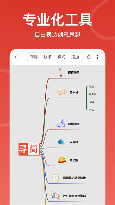 5.多平台同步:XMind 支持 PC/Mac & iOS & Android ,你可以方便地实现跨平台操作;