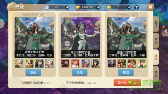 卡牌副本总共有三个可挑战的,卡牌的品质分为白、绿、蓝、紫、橙五种,每个品质的卡片对应的属性也有很高的提升。